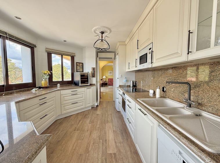 Upon entering, you are welcomed by a **spacious living and dining area**, ideal for relaxation or entertaining. To the left, a **separate kitchen** with large windows offers a picture-perfect view of the sea. From the **main terrace**, you can enjoy an **unobstructed view of Gibraltar and the Mediterranean**.