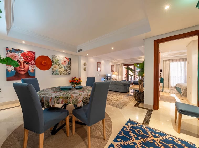 Positioned within a prestigious beachfront development on the highly desirable New Golden Mile between Marbella and Estepona, this spacious three-bedroom apartment offers a refined blend of comfort, lifestyle, and coastal elegance. The property benefits from a registered and transferable Andalusian tourist licence, allowing legal short-term rentals for up to six guests, making it an excellent option for both lifestyle buyers and investor – with current rental income estimated at €45.000 to €50.000 per year.