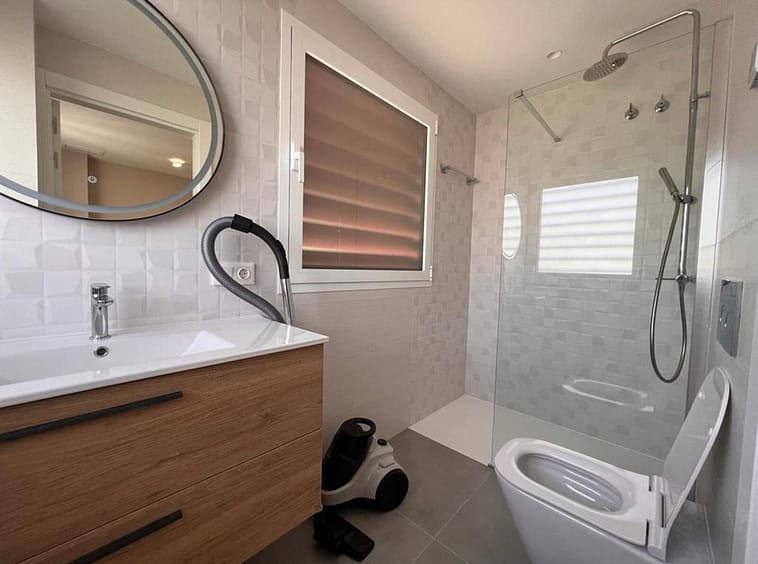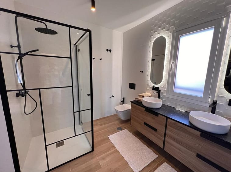 The main entrance floor has an open kitchen, spacious living room, 3 bedrooms and 2 bathrooms.