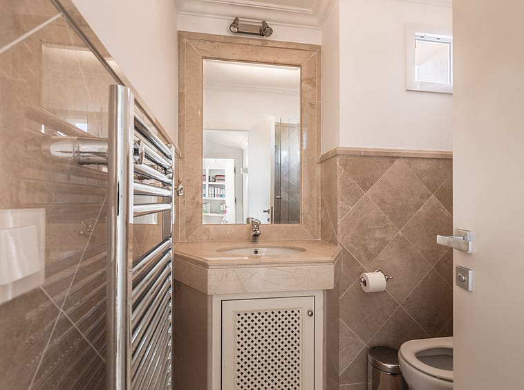 The property features a master suite complete with a dressing room, en-suite bathroom, and sauna, along with two additional bedrooms—one of which is en-suite. Additional amenities include a spacious lounge and dining area, a guest cloakroom, several large terraces, a fully equipped modern kitchen, private elevator access, underfloor heating throughout, mosquito nets in all doors, Gira domotic system, electric courtains and underground parking for two vehicles, all integrated with advanced domotic systems. The complex boasts a heated pool and 24/7 guards.
