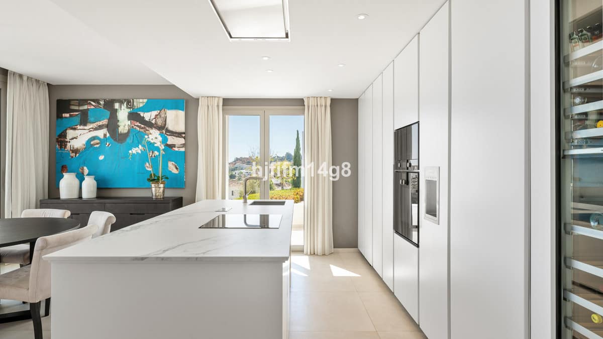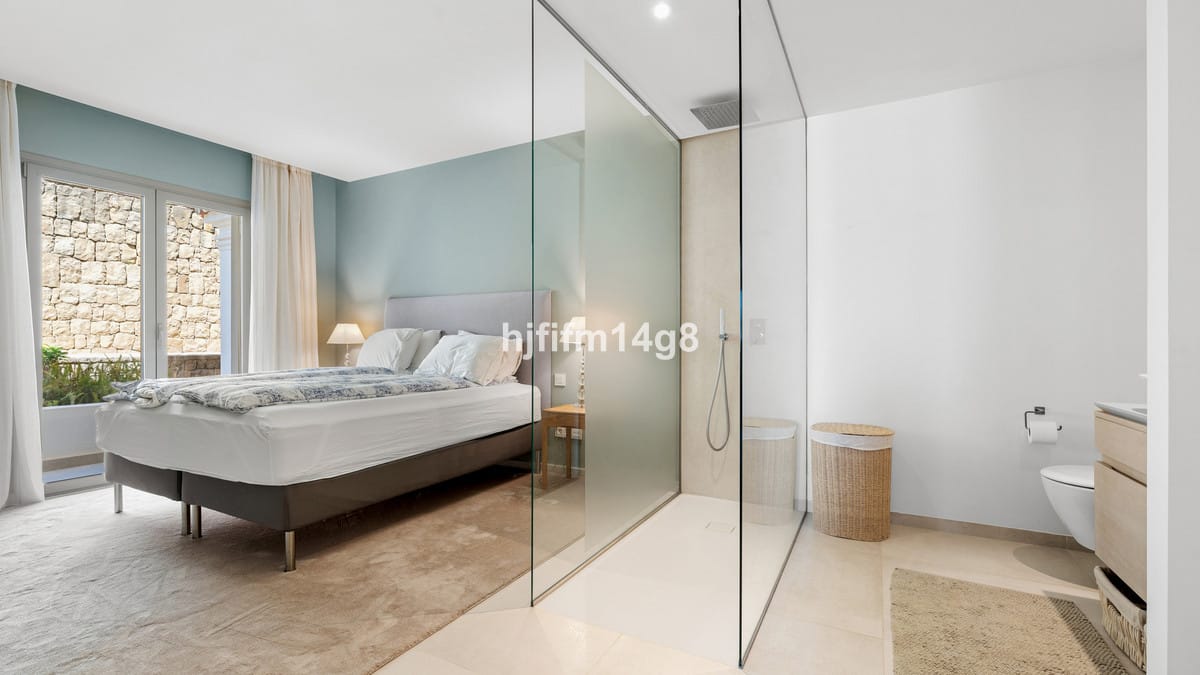 This is a 3-bedroom ground floor apartment. Inside, you will find the state of the art open-plan kitchen with Gaggenau appliances and an open living and dining area. The living area has direct access out to a spectacular large terrace with excellent sea and mountain views. There is a private garden with jacuzzi on it. All the rooms have been exquisitely designed and finished to the highest of standards.