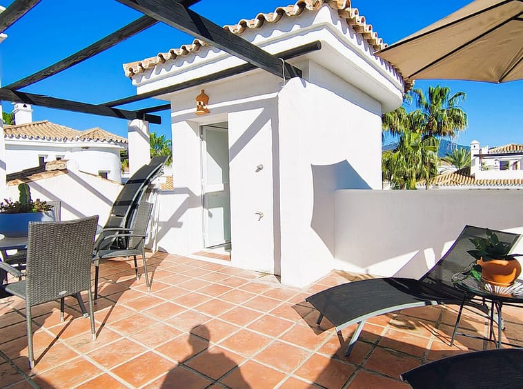 We are proud to present this exceptional south-facing duplex penthouse located in the prestigious Los Naranjos urbanization, Nueva Andalucía. This property stands out for its brightness, expansive terraces, and a strategic location that guarantees a comfortable and convenient lifestyle.