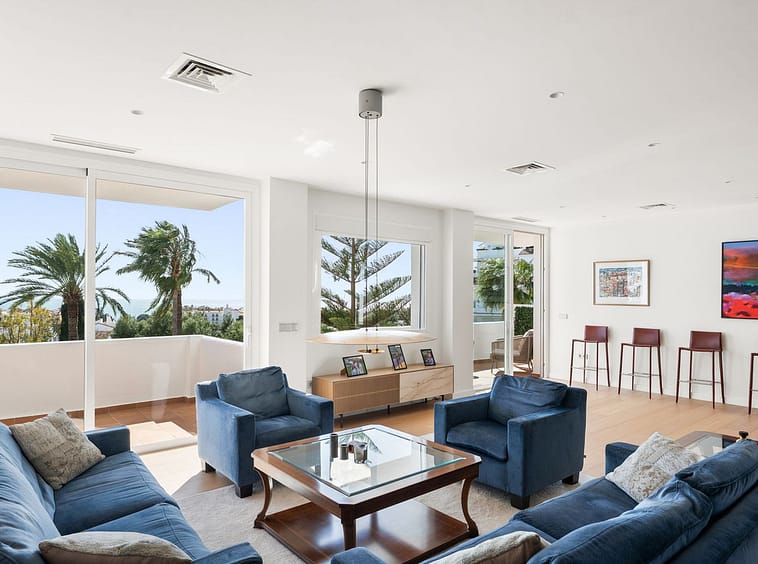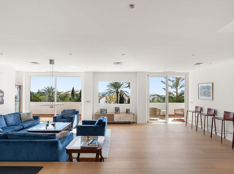 This is a bright and fully renovated corner apartment in Royal Gardens, one of the best locations in Nueva Andalucía. This Scandinavian styled south-facing home features 3 bedrooms and 3 bathrooms, with stylish and high-quality finishes all around.
