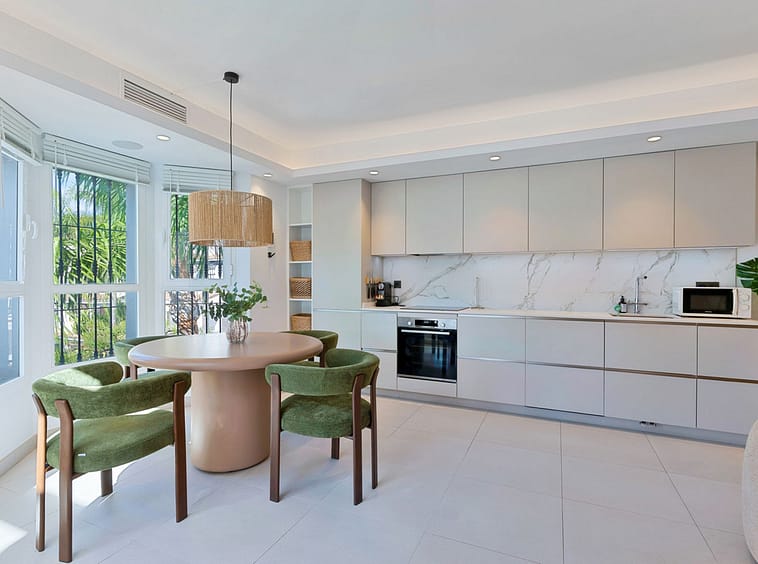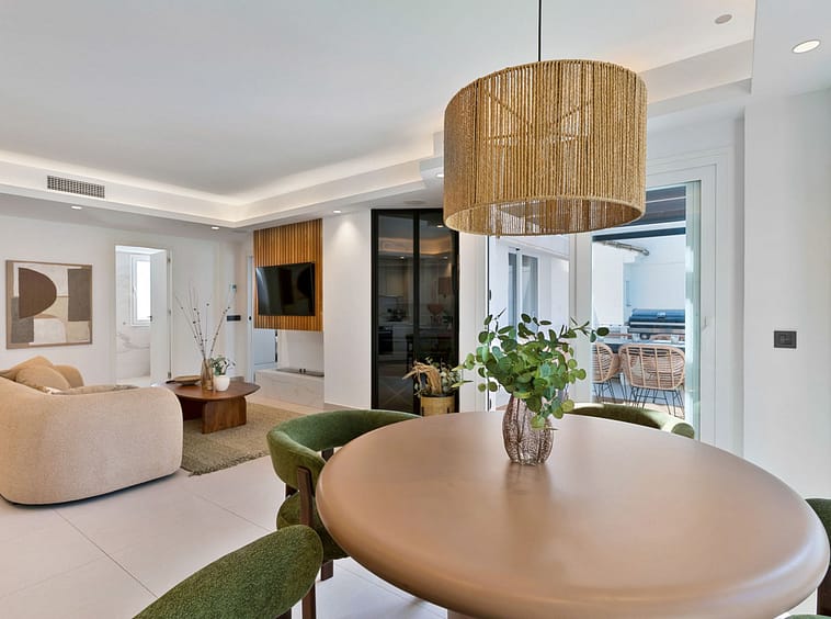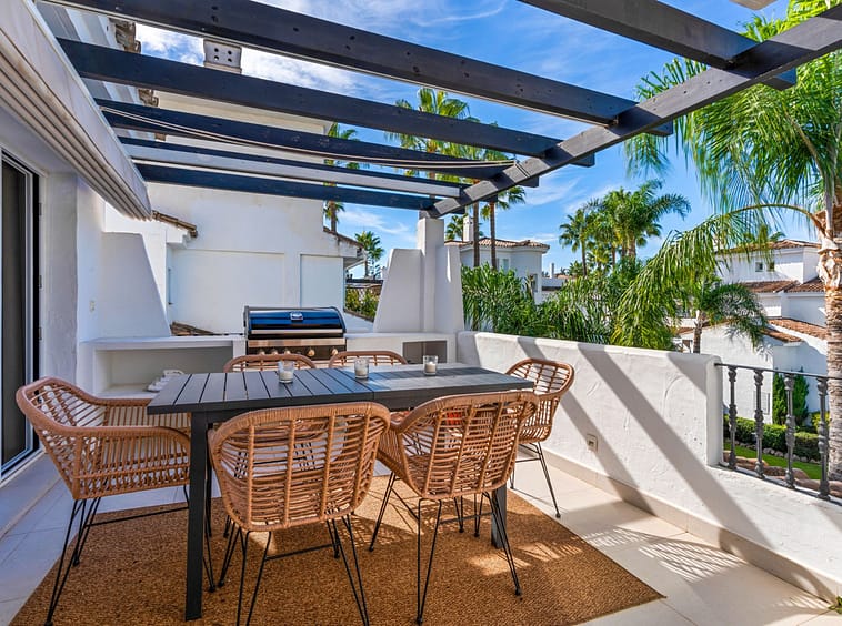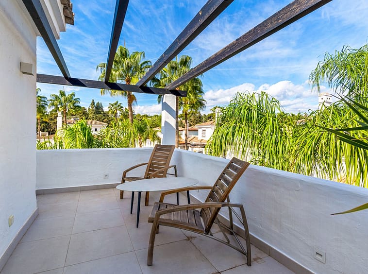 This duplex penthouse is located in Los Naranjos de Marbella, in the popular area of Nueva Andalucia, Marbella, Malaga. The property offers three bedrooms and three bathrooms, providing comfortable living space for families or groups.