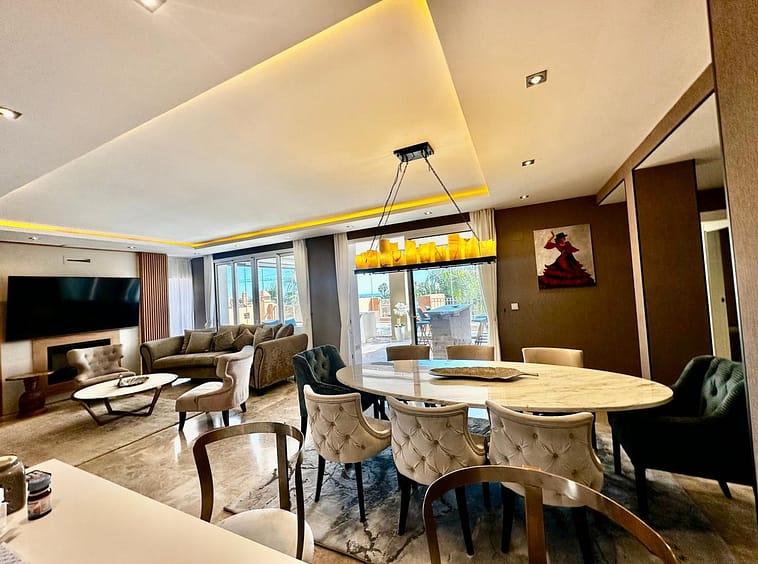 Spectacular duplex penthouse with 3 bedrooms and 3 bathrooms in an exclusive development in Nueva Andalucía, recently renovated combining elegance and comfort, on the main floor there are two spacious bedrooms and two bathrooms, a modern fully equipped kitchen with separate laundry area and a bright living-dining room with access to a wonderful covered terrace, perfect to enjoy with family and friends, from this terrace there is also access to a large open terrace ideal for relaxing outdoors, on the upper floor is the master bedroom with en-suite bathroom and access to a large private solarium with stunning views of the Mediterranean Sea and the mountains, the development offers a peaceful and distinguished environment with landscaped areas, swimming pool and security, the property also includes two parking spaces and a storage room, a unique opportunity for those seeking luxury, comfort and unbeatable views in one of the most exclusive areas of Marbella.
