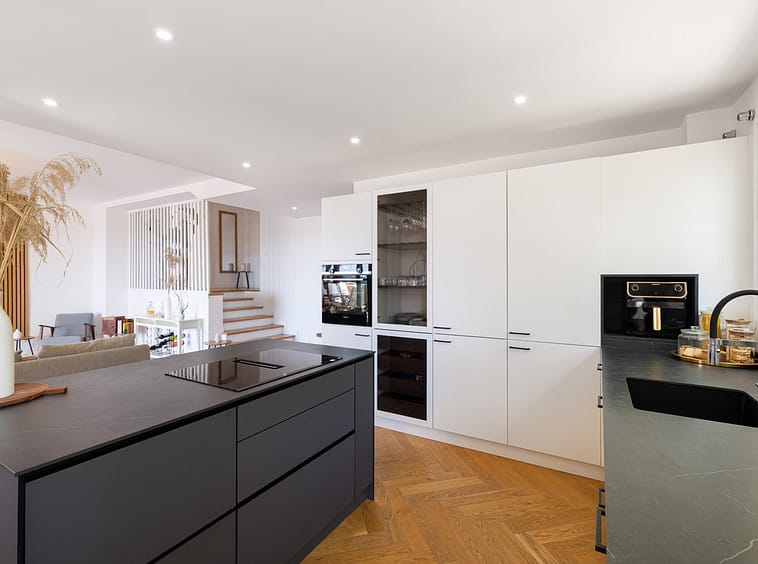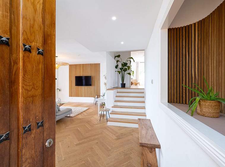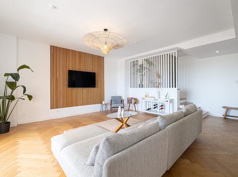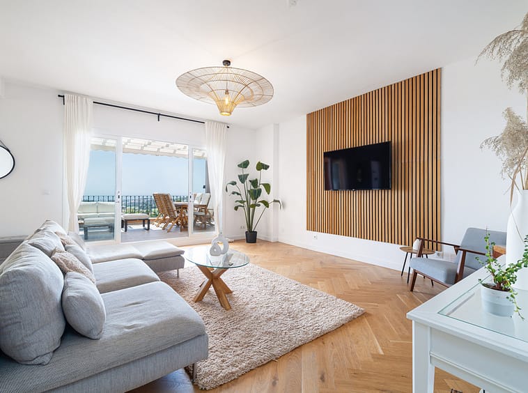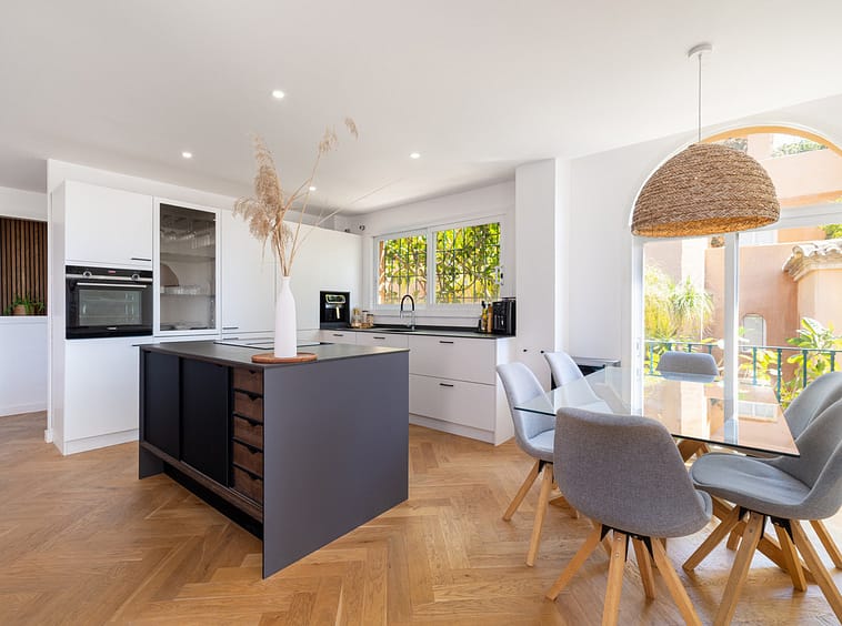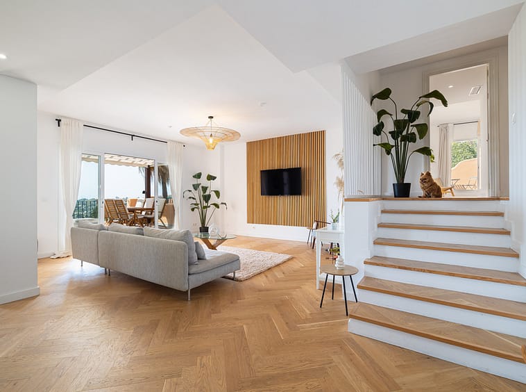 Designed in a contemporary Scandinavian style, the home features oak wood flooring, a bright and airy open-plan layout, and abundant natural light streaming through expansive windows. The spacious living areas are complemented by an advanced Airzone climate control system and partial underfloor heating, ensuring year-round comfort. High-quality designer furniture is included, making this property move-in ready.