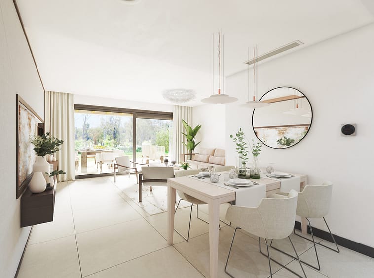 The project has been designed to ensure that all of the homes enjoy impressive panoramic views from the generously sized terraces and living rooms. Architecture in the communal areas is inspired by the “Boho Chic” and “Country Chic” aesthetic concepts where natural materials and colours are combined to blend into the local scenery in a balanced way, favouring a relaxed ambience and an escape to peaceful surroundings.