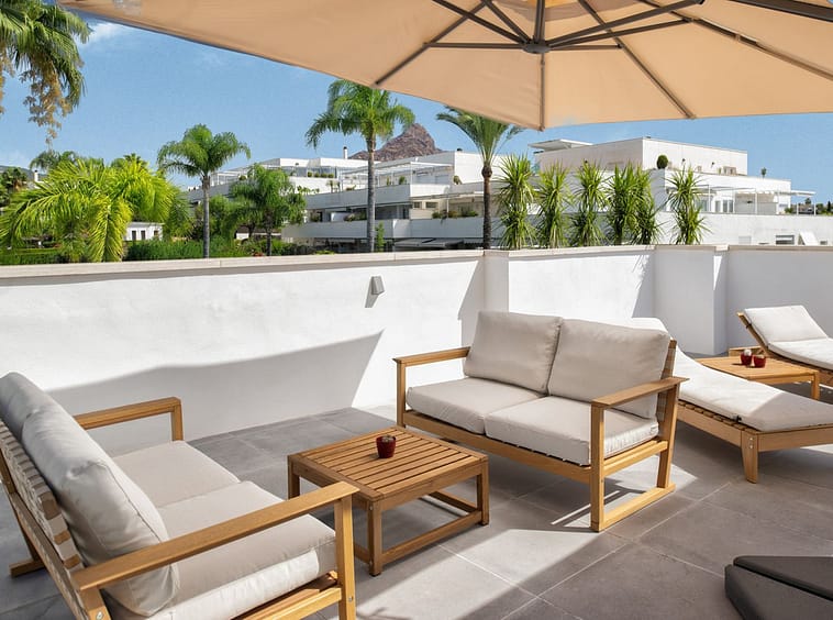 Terrazas del Rodeo is a private urbanization with 24/7 security. Here you will find two swimming pools, tennis courts, and a children's play area. It is within walking distance of amenities, the beach and Puerto Banús.