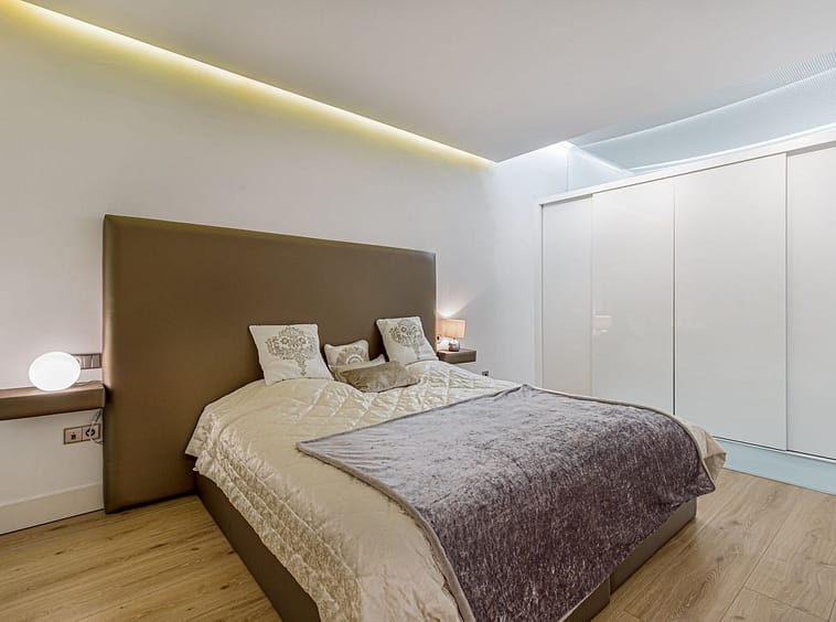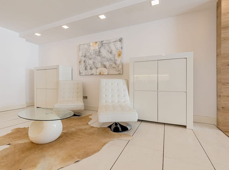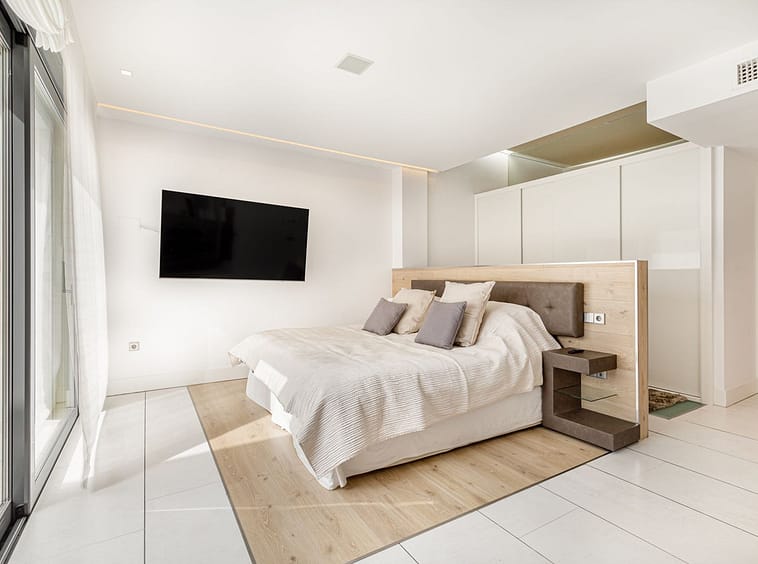 Completely renovated in 2014 with top modern design and with high quality materials, this property offers numerous extras such as a full domotic system that controls the electric blinds, the cold / hot air conditionning system, the underfloor heating and the many led lightings throughout the whole apartment; a music system with integrated speakers in the ceiling in each bedroom; Hansgrohe fittings and Porcelanosa ceramic tiles in the bathrooms; a full shower room/toilet on the living area level, as well as a storage/utility room.