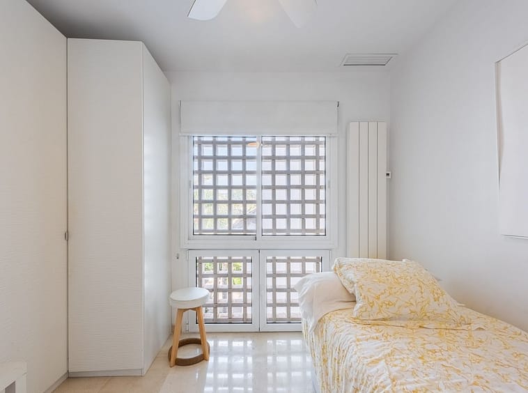 The interior of the penthouse spans 207m² and features a fully fitted kitchen, a lavish living room, and a laundry room. It comes fully furnished and equipped with modern amenities including air conditioning and fitted wardrobes, ensuring comfort and convenience. The communal areas include a heated pool and a gym, promoting a healthy and active lifestyle. The covered terraces further extend the living space, allowing for year-round enjoyment of the serene surroundings.