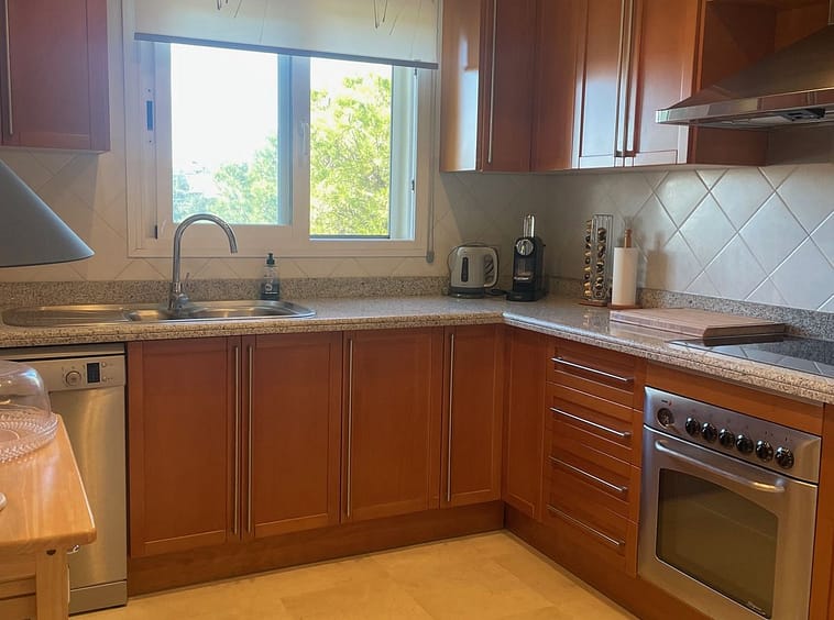 The property has a total size of 173 m² (154m2 inside + 19m2 terraces) and provides 3 bedrooms with large built-in-wardrobes, hall, living-dining room, 2 bathrooms, separated guest toilet, and a spacious fitted kitchen equipped with all the appliances.
