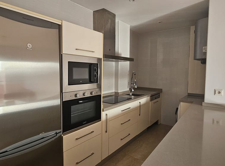 Spacious 3-bedroom, 2-bathroom apartment in a private residential complex with ample green areas, a communal swimming pool, and a barbecue area. Parking space included in the price.
