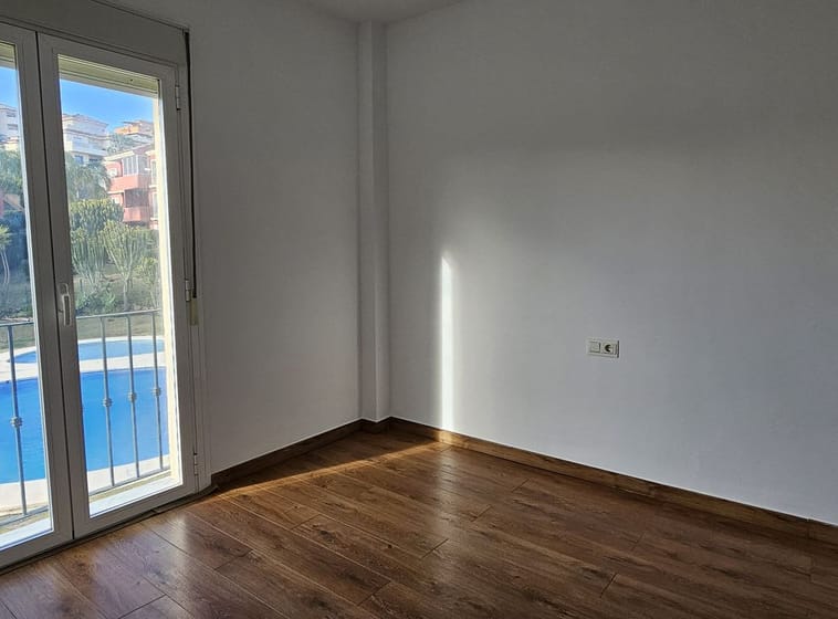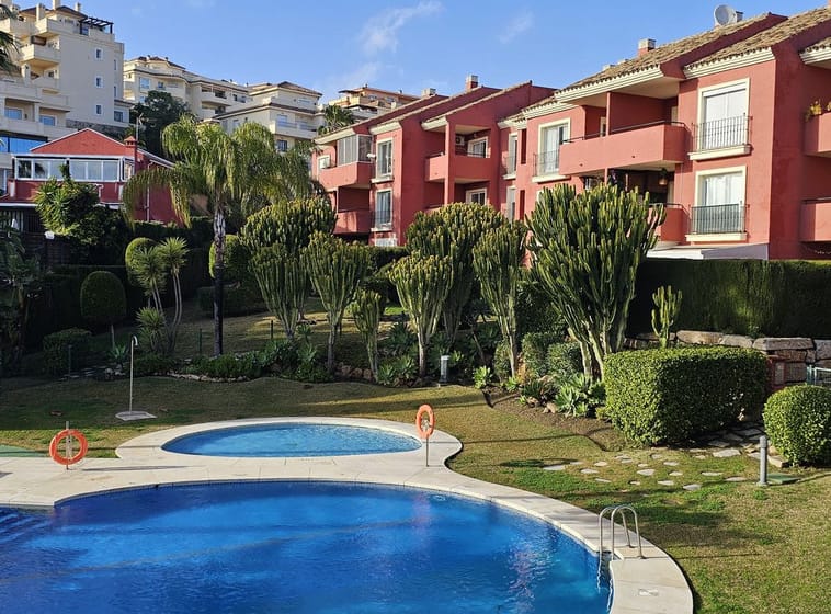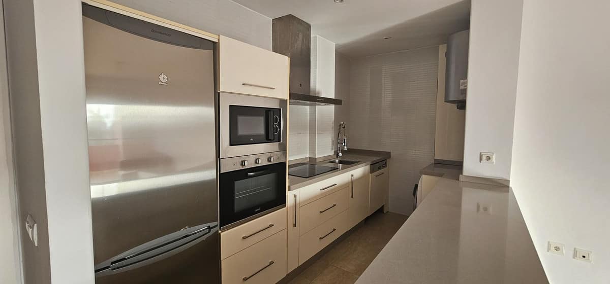 Located in Riviera del Sol, next to numerous golf courses, less than 10 minutes from Fuengirola and 15 minutes from Marbella. This first-floor corner apartment (no elevator) features a large living room with a terrace, a fully renovated and furnished open-plan kitchen with appliances, three bedrooms with built-in wardrobes, and two bathrooms, one of which is en-suite.