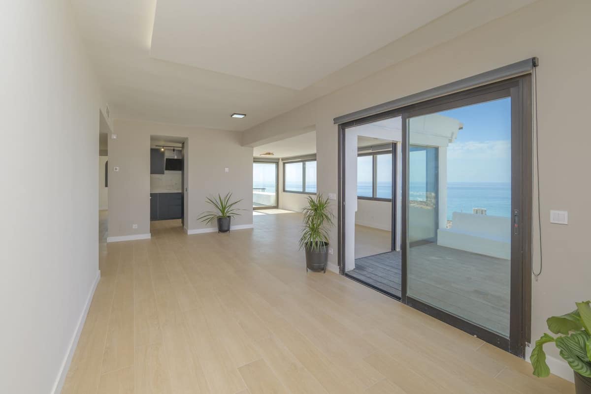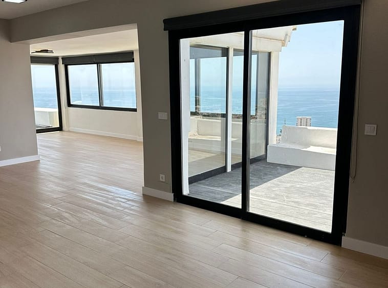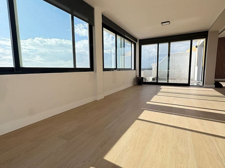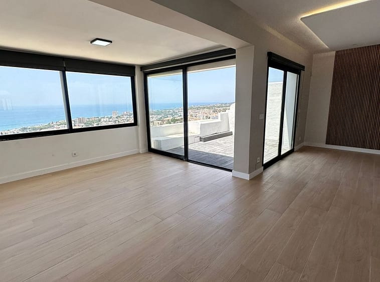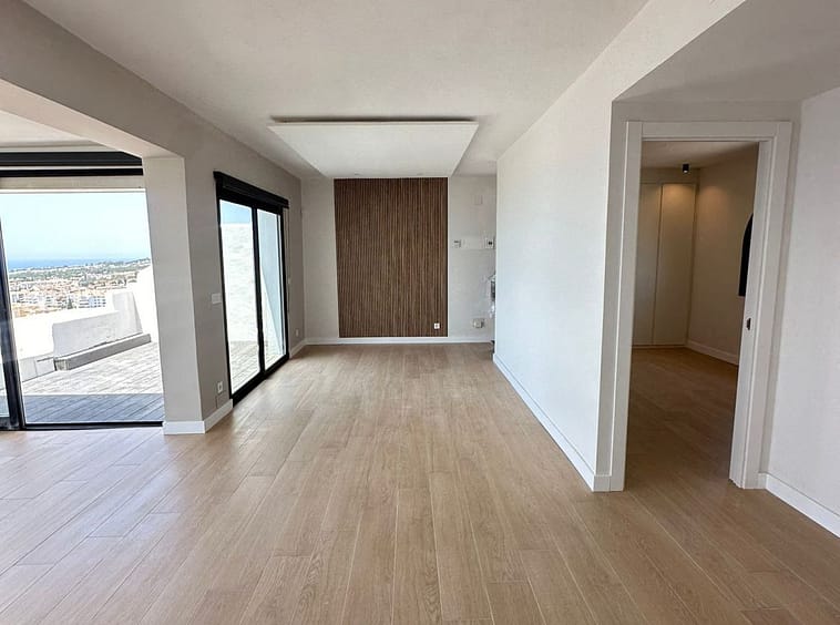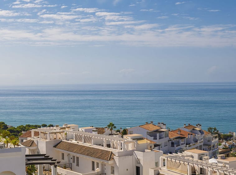 We offer this wonderful penthouse for sale in the coastal town of Mijas, province of Málaga. Located in a gated community with a communal pool and well-maintained landscaped areas, this apartment will make your stay a healthy experience, filling you with vitality and good humor. 17 km from the center of Málaga city, it will provide you with access to all the services and facilities you may need (shops, supermarkets, sports, educational, and health centers, public transportation, hospitality and catering services, government offices, and leisure facilities, such as the Miraflores Golf Course (1.7 km) or Torre Nueva Beach (2 km), among others. This wonderful home is located on a single floor and is located in the penthouse of a residential building. This first-floor apartment, with no elevator, occupies an exclusive wing of the floor, ensuring privacy as it is not shared with neighbors. It has a constructed area of 115 m², distributed among: 3 bedrooms with built-in wardrobes, a separate kitchen, two full bathrooms (one en suite), and a spacious living-dining room with access to a 22 m² terrace. This spacious area, which seems to divide the terrace in two, is located inside the living room. It features large windows and large glass doors, from which you can enjoy the beautiful 360º panoramic sea views in any season, regardless of the weather (it is sunny for most of the day). You can also spend unforgettable moments with your loved ones enjoying the beneficial Mediterranean climate on the terrace on summer nights.