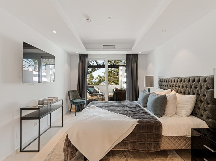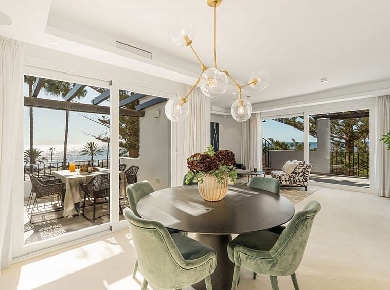 Positioned along Avenida de las Petunias, one of the most desirable areas in San Pedro, the property enjoys an exceptional location only 25 meters from the beach promenade. This proximity to the sea allows easy access to Playa San Pedro de Alcántara, known for its wide sandy stretch and calm waters, ideal for swimming and family activities. The surrounding area offers a lively yet relaxed atmosphere, lined with palm trees, cycling paths, and beachside dining venues such as Macaao Beach Club, Nuevo Reino, and El Ancla Restaurant, all known for their vibrant Mediterranean cuisine and sea views.