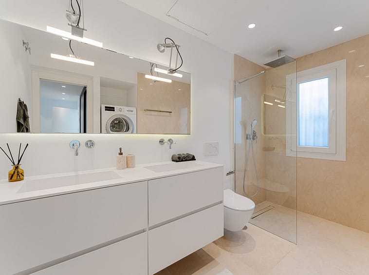 This outstanding residence has been designed to harmonize modern aesthetics with functionality. Originally constructed in 1985 and fully renovated in 2019, the property combines timeless quality with a clean, Scandinavian-inspired design. The penthouse offers 163 square meters of interior living space and two expansive terraces that invite panoramic views of the Mediterranean Sea, mountain landscape, and community pool, creating a calm and elegant environment ideal for coastal living.