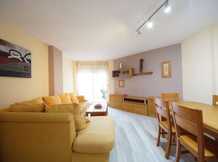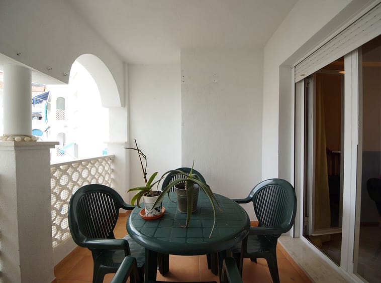 This spacious and bright apartment is for sale furnished in a residential complex with landscaped gardens and a communal pool. The property features a large living-dining room with abundant natural light and direct access to a covered terrace, ideal for breakfasts, al fresco dining, or relaxing.