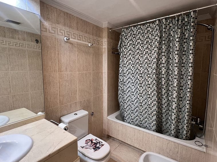 It features 2 full bathrooms, one with a shower and the other with a bathtub, a fully equipped kitchen, and a generous living-dining area with direct access to the terrace. All rooms enjoy excellent natural light.