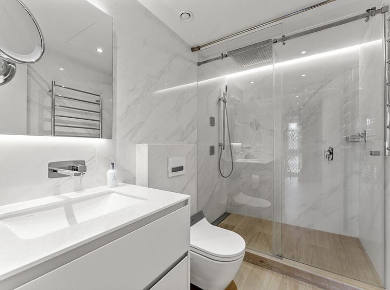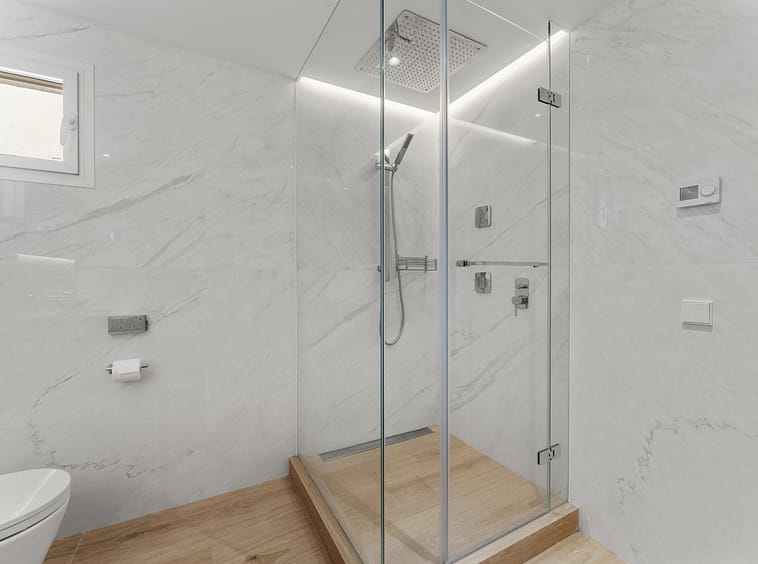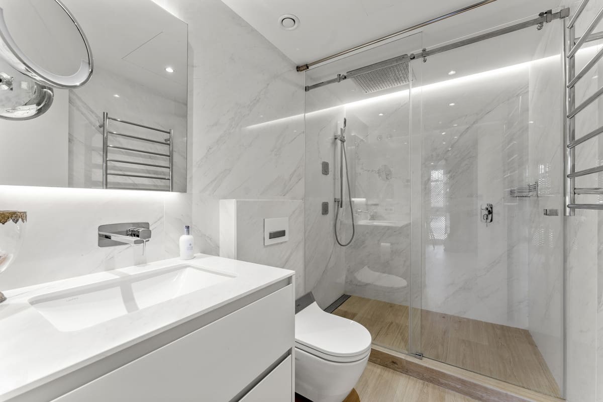 Each of the three bedrooms is ensuite, offering privacy and comfort to all residents. The master suite stands out with its own private terrace, providing a quiet retreat with lovely views and direct outdoor access.