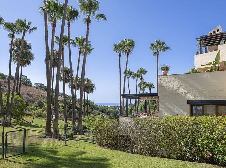 Spacious apartment with sea views and direct access to the community garden, located in one of the most peaceful and secure areas of the Golden Mile – Las Lomas del Marbella Club.