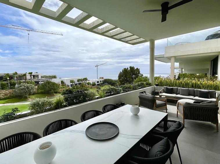 The Cape is an innovative residential project in Cabopino. This seaside wonder is located in the municipality of Marbella (Malaga), one of the most beautiful spots on Costa del Sol. The house is situated in a frontline golf, has 3 bedrooms all with en-suites and powder room, spacious terrace offers wonderful views of the Mediterranean Sea. There is a private swimming pool with sun terrace as well as private garden to enjoy the brightness of the region. The living room is designed to ensure wellbeing and offers ease and elegance with the hight of the ceiling of 3.60 metres.The architectural feature offers a very spacious and luminous space with stunning sea views to guarantee you a place of repose and leisure where to enjoy one of the most privileged areas of the world. The kitchen has been perfectly equipped with appliances NEFF, a brand that specializes in state of the art build-in kitchen appliances, Porcelanosa flooring, bathrooms and kitchen countertop with one piece integrated sink and top of the line faucets.Many upgrades have been done, extension of the master bedroom, laundry room with integrated sink and top of the line washer/dryer, exclusive lighting design, luxury automated window covering, wood paneling in the living room and bedroom, privacy glass curtain installed on the terrace separation, kitchen cabinets upgraded, tiled front porch, outdoor faucets installed, electric car charger installed next to the parking spot, energy efficient climate control by Aerotermia Daikin, in-floor heating through out the house.Must see to appreciate everything that this house has to offer.