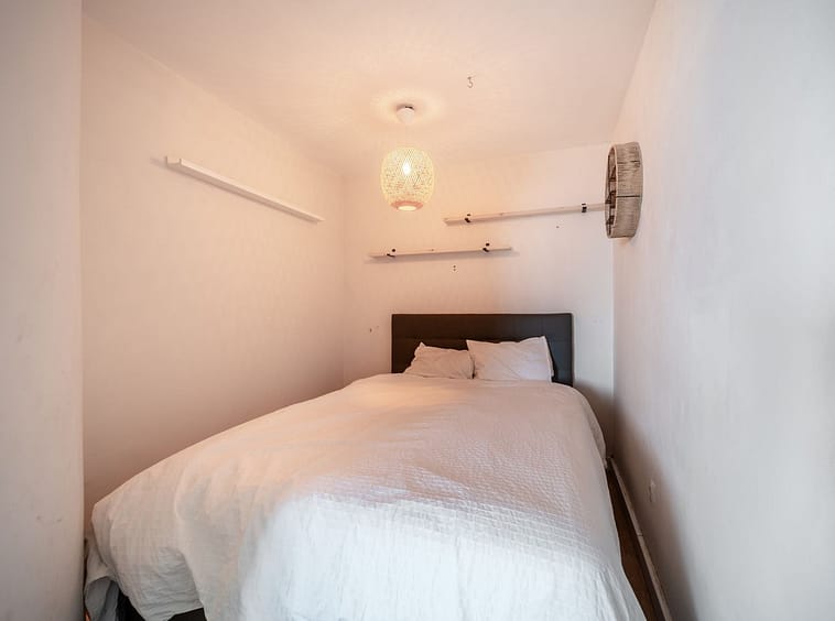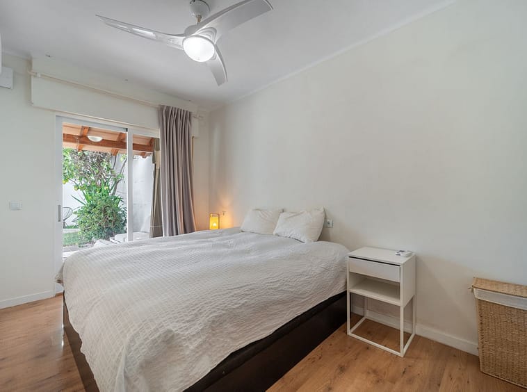 On the lower floor are the three bedrooms and two bathrooms, plus the extra shower room. In the main bedroom, behind the built-in wardrobes, there is a small additional room that can be used as a dressing or storage space.