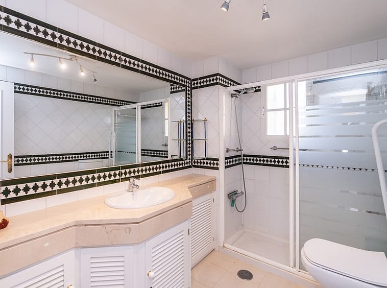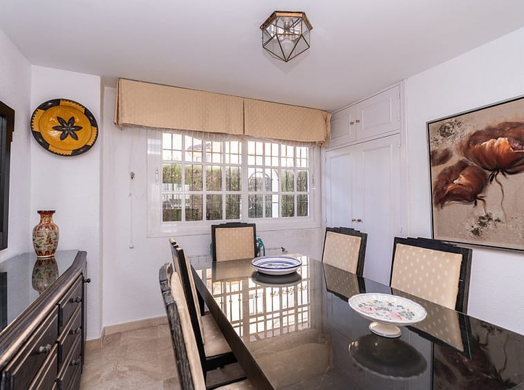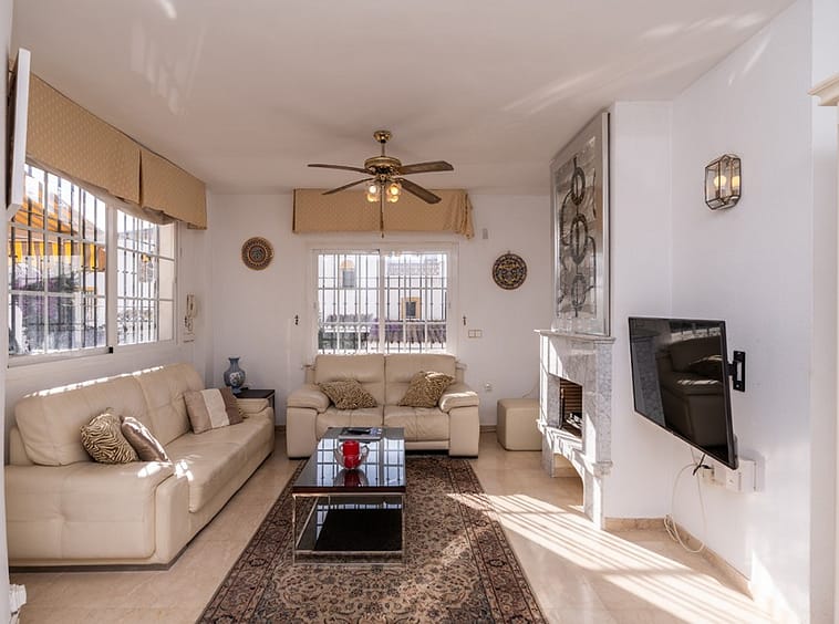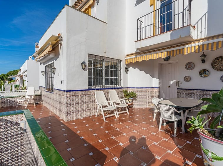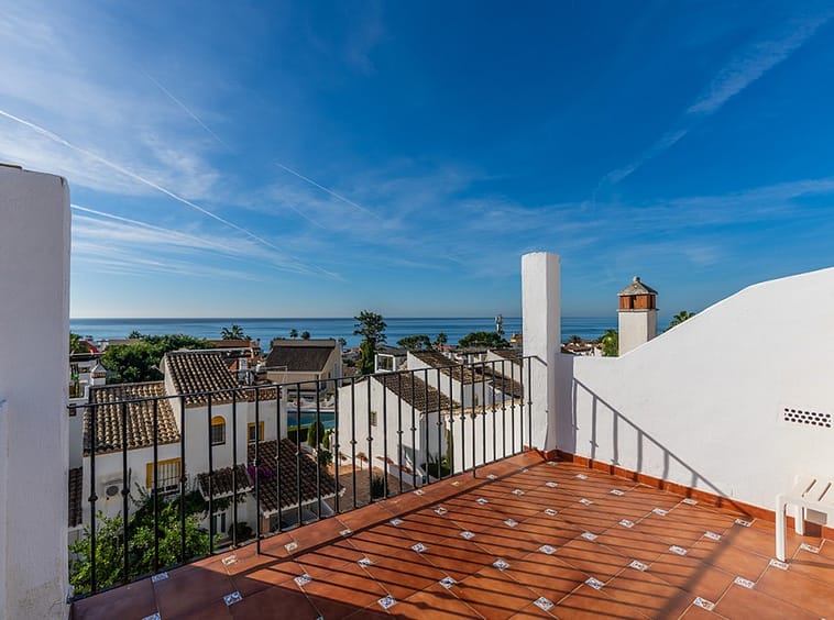 Ample and bright semi-detached house in the urbanisation Costabella in East Marbella. The house offers on two levels three bedrooms, three bathrooms, a good sized living room, big kitchen, front terrace and back summer terrace. Amazing sea views from first floor and from roof terrace. The house offers great potential as there is a basement that could be converted into more bedrooms or whatever you like. Amazing complex within a couple of steps from the beach with large pool area, garden and parking space area. Marbella Centre is only a 10 minute drive away.