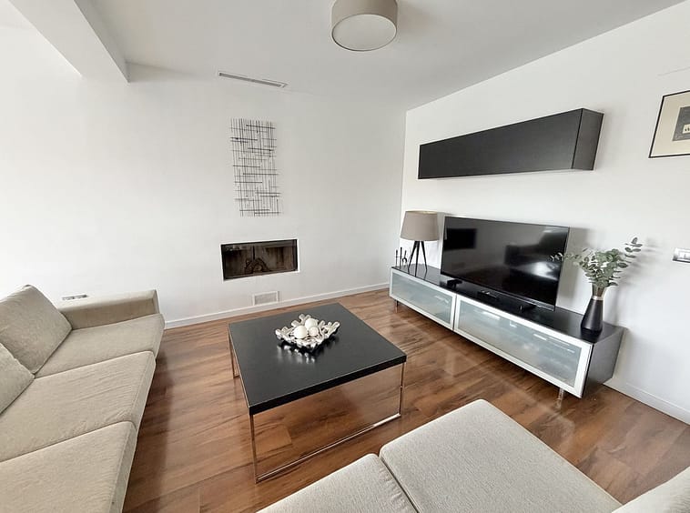 The first floor houses three bedrooms, all very bright and featuring built-in wardrobes. They share a beautifully designed full bathroom that offers both comfort and style. The master bedroom has access to a private terrace with open views.