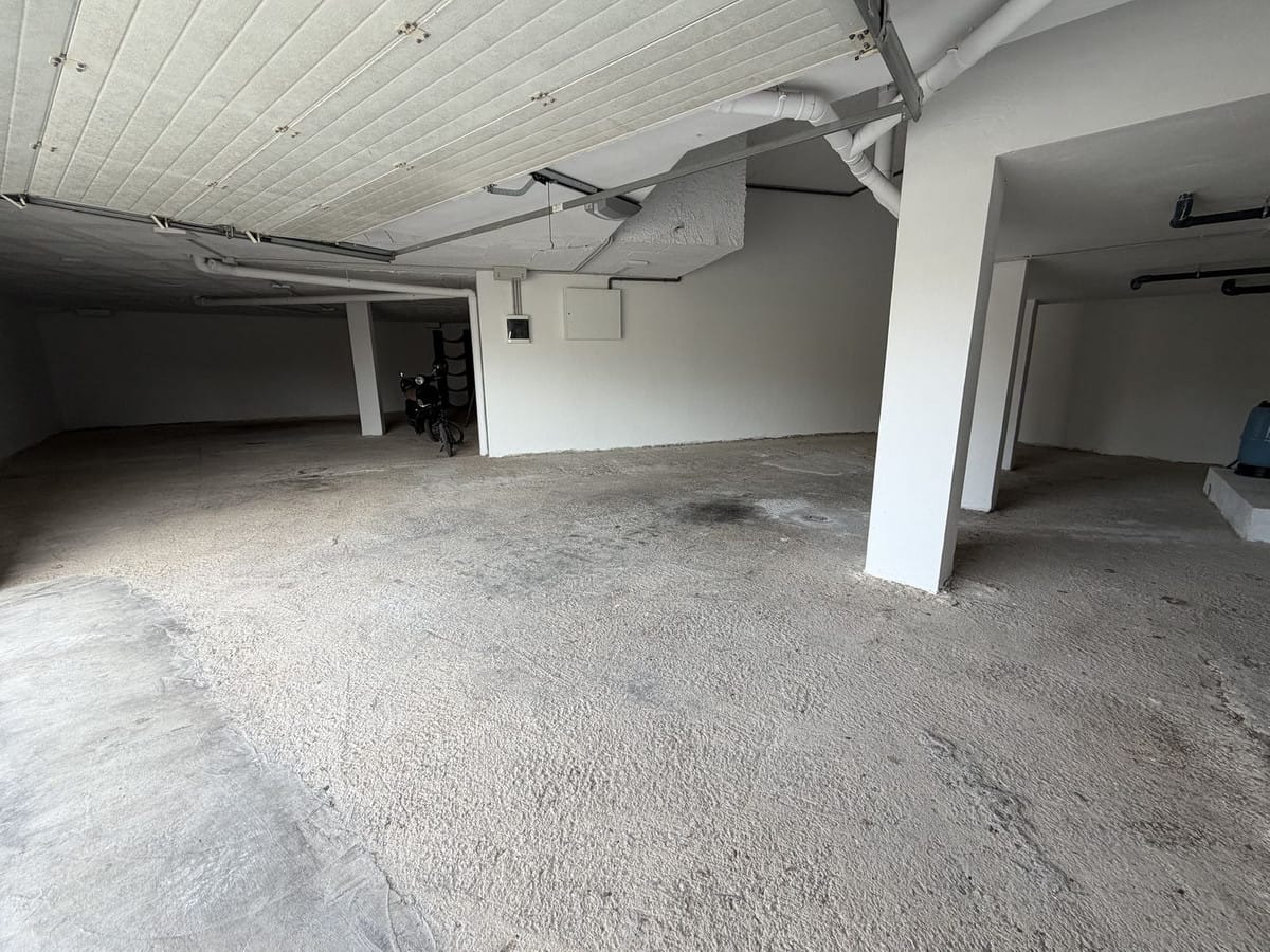 The large garage can accommodate up to four vehicles and includes additional space for storage, a gym, or a workspace.