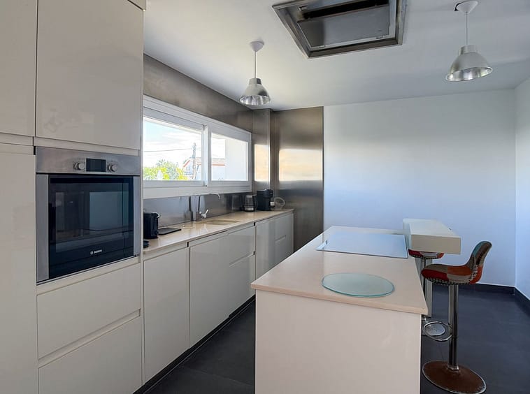 There are three good-sized bedrooms and two bathrooms, along with an open living space that connects naturally to the outdoor areas. Solar panels and a garage with an electric charger add practical, eco-friendly benefits. There is also the possibility of adding a rooftop solarium, which would take full advantage of the views out to the Mediterranean.