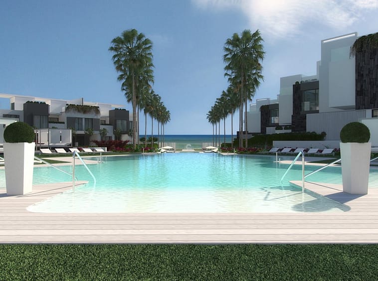 Frontline Estepona 50 state-of-the-art townhouses with 2, 3, 4 or 5 bedrooms, sizes from 319m² to 449m², all with a roof terrace and private swimming pool.