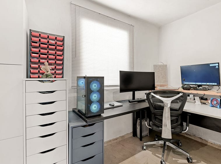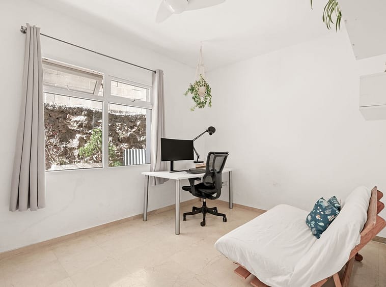 There are two guest bedrooms, currently in use as offices, as well as a guest bathroom and a separate WC.
