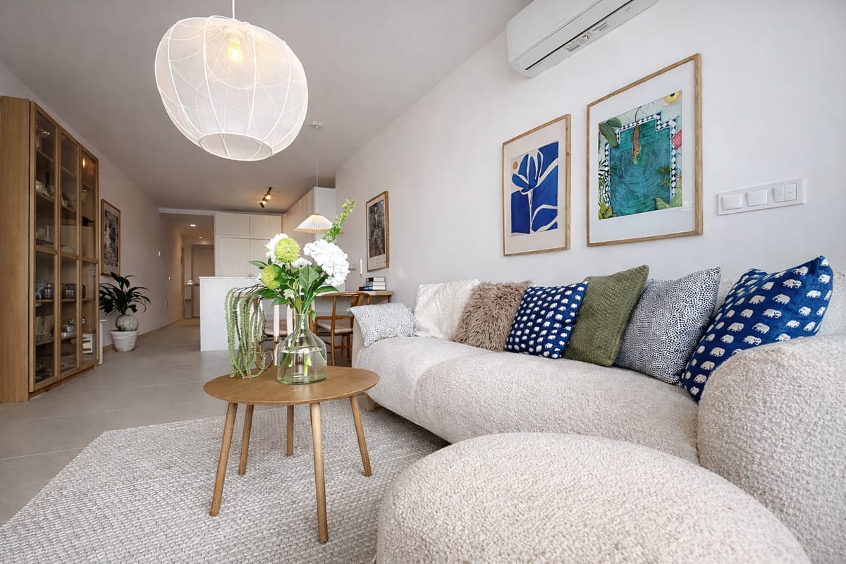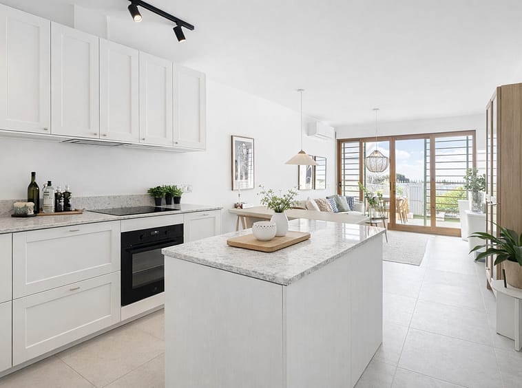 The property features 3 bedrooms and 2 bathrooms, offering a modern and functional layout. The open-plan kitchen is perfectly integrated with the dining and living area, creating a bright, open and very welcoming space.