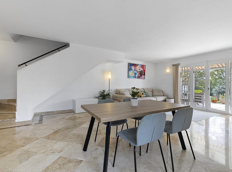 This beautiful semi-detached townhouse is set within a quiet cul-de-sac, forming part of a small and peaceful community. Ideally positioned, the property overlooks the large communal garden and impressive swimming pool, creating a tranquil and attractive setting.