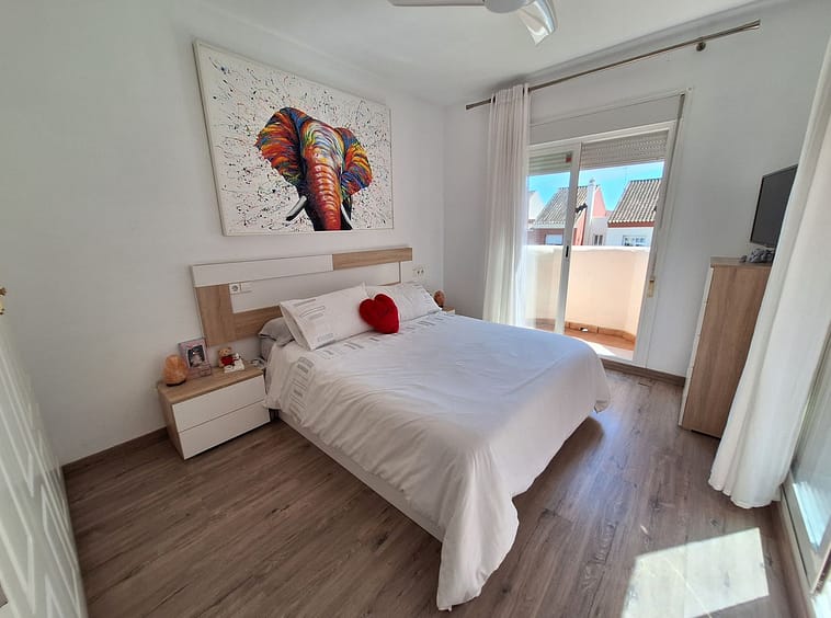 As you enter the main living space you have on your left a shower room with toilet and window. And on your right you have a modern, fully equipped LG kitchen with LED lighting. Ample storage space, with laminate wood flooring, totally reformed.