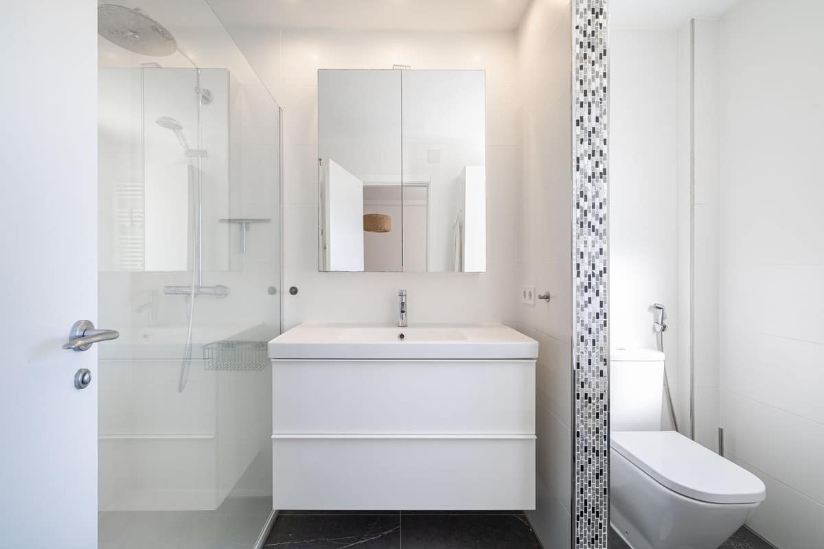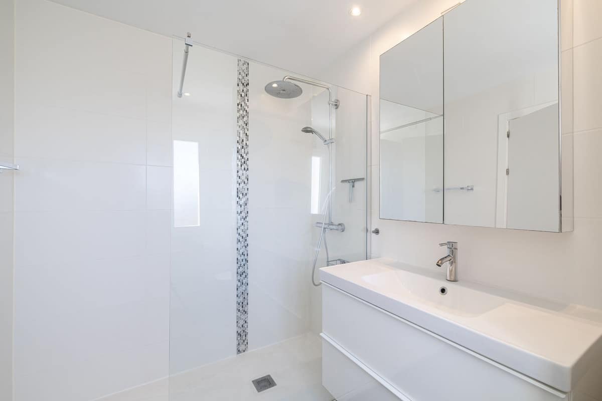 On the third floor, there is a large rooftop terrace that is partially covered and glass-enclosed. This space has been fitted with a second kitchen and is perfectly suited for use as a home office or an extra bedroom for guests. The terrace has plenty of room for both a lounge set and sun loungers, and it includes an outdoor shower for refreshing yourself. The rooftop is crowned by beautiful views of the Mediterranean, providing a heavenly oasis for enjoying the outdoor lifestyle.