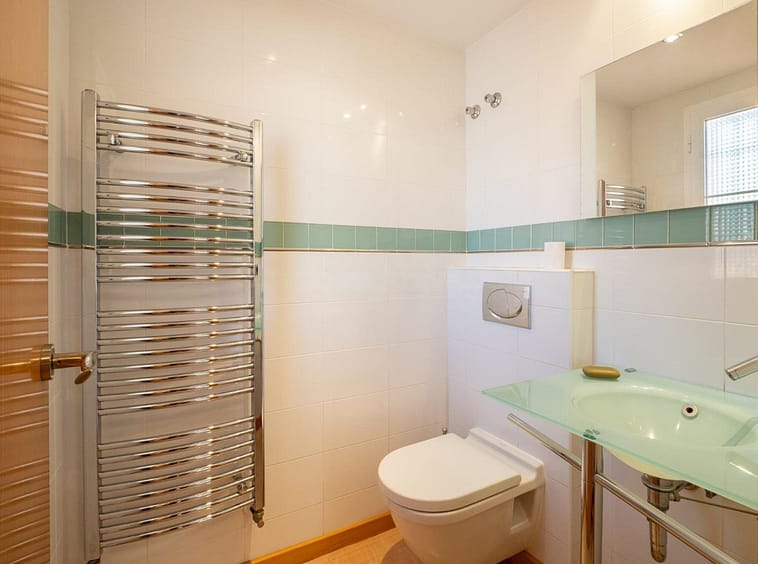 The property features 3 exterior bedrooms, all with fitted wardrobes, as well as 2 full bathrooms and a guest toilet, designed with a modern and practical layout. The spacious living-dining room enjoys abundant natural light thanks to its corner position and has direct access to the outdoor area. The house is equipped with air conditioning and central heating , ensuring year-round comfort.