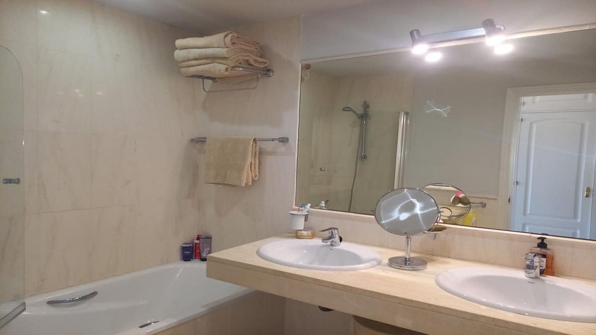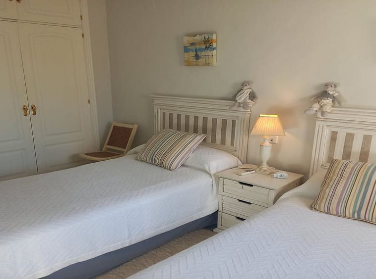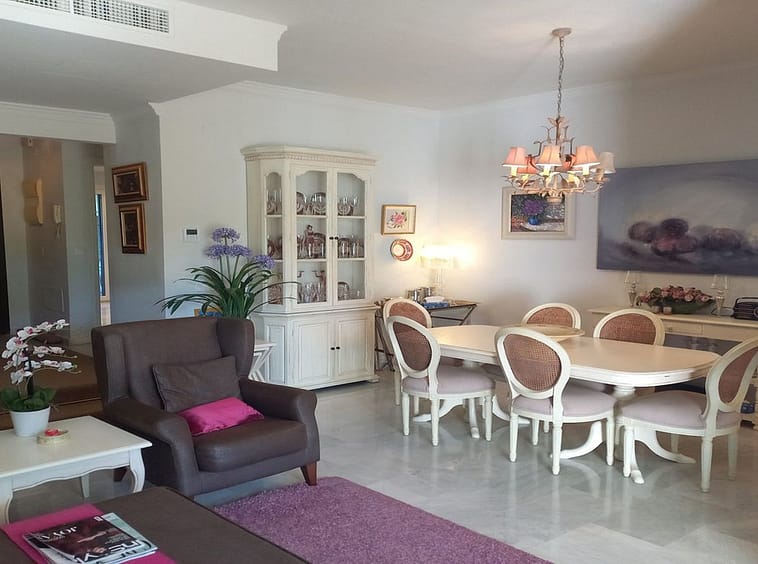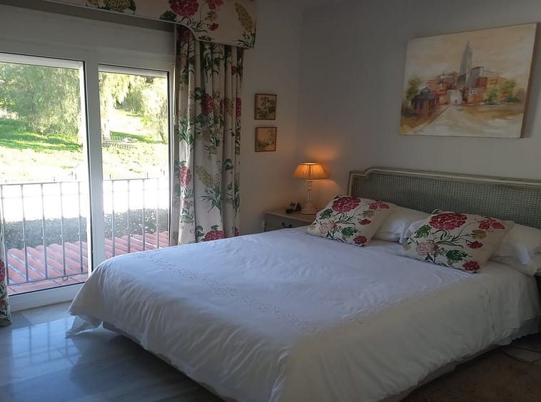 Superb spacious townhouse located in one of the most sought after urbanisations in Guadalmina Baja. Set in sumptuous landscaped gardens with a generous sized swimming pool. The property is on two storeys with a large storage in the basement and double garage. Impeccably maintained, the house has a large terrace at the entrance. Consisting of an entrance hall, kitchen, toilet, split level lounge with a fireplace leading onto a south west facing terrace with views of the gardens, pool and golf course. Upstairs level has 3 good sized bedrooms with ensuite bathrooms and a terrace in the master. Ideally positioned within walking distance of the beach, golf course, commercial center and International Schools. Easy access onto the motorway with Puerto Banus only 10 minutes away.