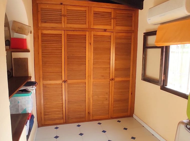 The house is thoughtfully laid out across two levels. Upstairs, the entire floor is dedicated to a spacious master bedroom, complete with an en-suite bathroom and a dressing area, creating a private retreat with beautiful outlooks. On the ground floor, you’ll find a welcoming living room, a fully equipped kitchen, two comfortable bedrooms, and a shared bathroom—perfect for family living or hosting guests.