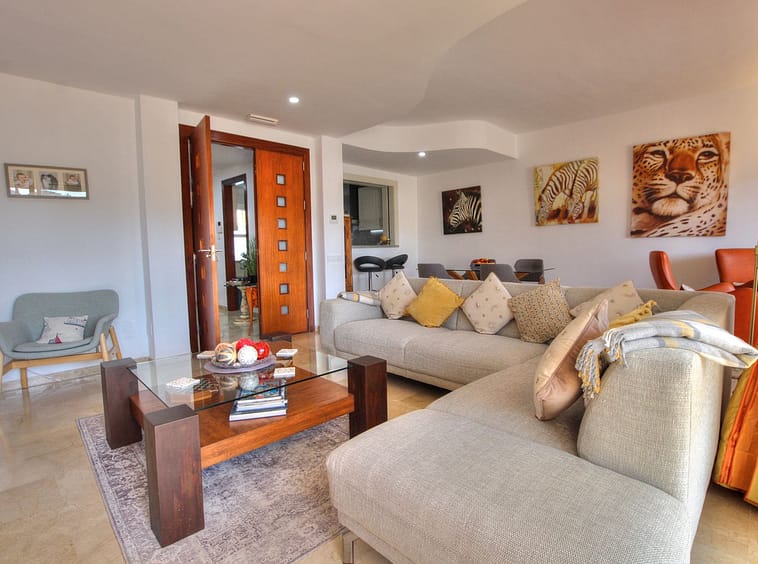 This luxurious and extra large townhouse in La Cala Golf offers plenty of living space, and fabulous open views to the golf course and the mountains beyond. The small gated community also has a wonderful communal pool and garden area. The house itself has a huge private garage, a very large lounge/diner leading to a sunny terrace, a fully equipped and modern kitchen with morning terrace. Upstairs you have 3 double bedrooms with built in wardrobes, the main bedroom has a large en-suite bathroom and a private terrace with the most wonderful uninterrupted views and the guest bedrooms have the use of the guest family bathroom. The house has a recently replaced air conditioning system, is tastefully furnished and represents great value for money. Sure to sell fast, please enquire today!