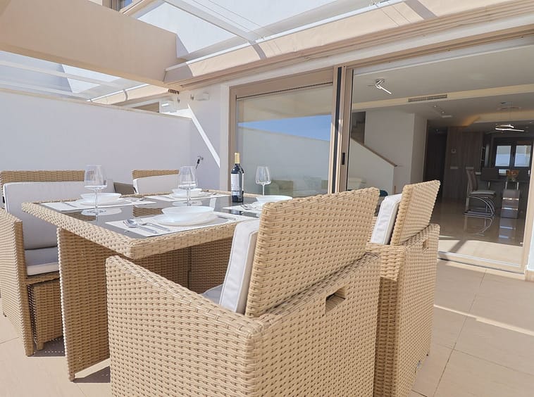 The rooftop solarium is a standout feature, offering spectacular panoramic views across the golf course, mountains and out towards the sea — an exceptional space for sunbathing or evening entertaining. Solar panels for hot water further enhance the property’s energy efficiency and cost-effective running.