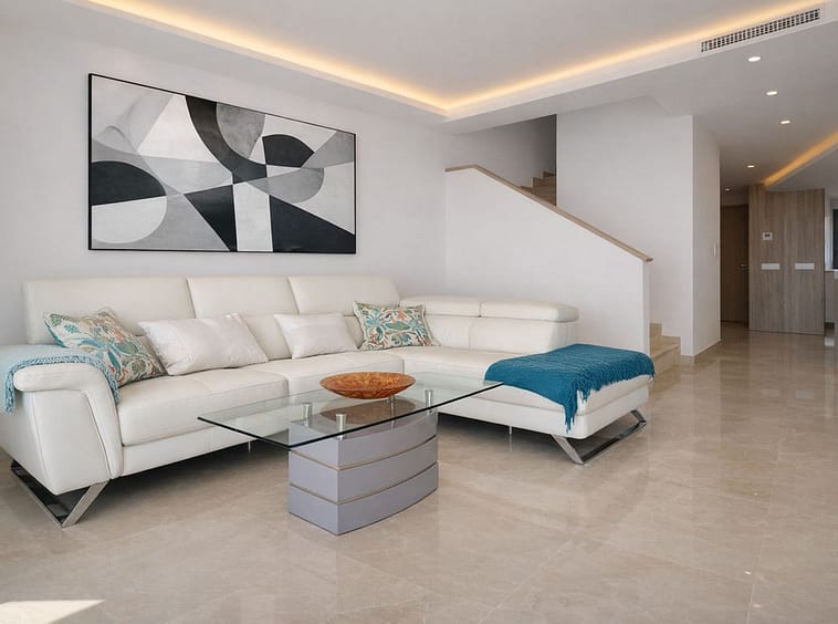 This elegant contemporary townhouse combines space, natural light and clean architectural lines, offering seamless indoor-outdoor living in a peaceful, high-quality setting. Finished with marble flooring throughout and a private elevator connecting all floors, the property presents a refined yet highly practical living environment, ideal as a permanent residence or a stylish holiday home.