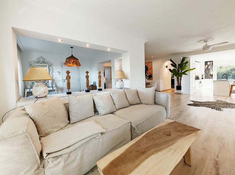 Villa for sale in Las Chapas, Marbella with 3 bedrooms, 2 bathrooms and 1 on suite bathroom, with communal swimming pool and private garden. Regarding property dimensions, it has 120 m² built and 400 m² plot. Has the following facilities amenities near, transport near, air conditioning, fully furnished, fully fitted kitchen, marble floors, alarm, security entrance, double glazing, dining room, barbecue, private terrace, kitchen equipped, living room, automatic irrigation system, security shutters, bars, laundry room, internet – wi-fi, covered terrace, electric blinds, fitted wardrobes, gated community, garden view, pool view, close to children playground, close to sea / beach, close to golf, glass doors, open plan kitchen, excellent condition, ceiling cooling system, close to shops and close to schools.