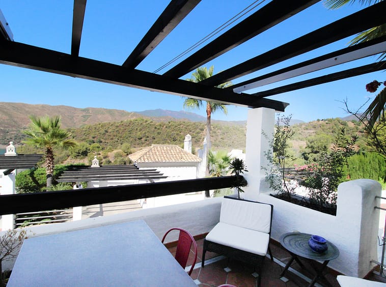 Situated just 9 mins from the Golden Mile and 10 into Puerto Banus, this is a small, unique development of just 59 townhouses, nestled into the foothills of the La Concha mountain in one of Spain's biggest National Parks and overlooking the Istan lake. Perfect for those looking to get away from the hustle and bustle and yet just a short hop into the centre of it all. This south/west facing house has a spacious and bright living area with windows and patio doors leading out onto two separate terraces, partly refurbished with new bathrooms and the possibility of opening up the large kitchen to the living area. Off the kitchen is an internal patio ideal for a BBQ. The living room leads out onto the elevated terrace from which you look directly out over the stunning mountains and lake. The upper level has three double bedrooms including the master suite which also enjoys those lovely views as does the 2nd bedroom. The 3rd bedroom has access to a small private terrace area. The house has a large basement/garage area with more than enough room for two large cars and storage. The complex itself has a security barrier and is protected with CCTV, there is a lovely and peaceful pool area and gardens close by as well as a children's play area at the far end of the community. The white village of Istan is just an 11 minute drive away and is very popular with cyclists due to its outstanding beauty.