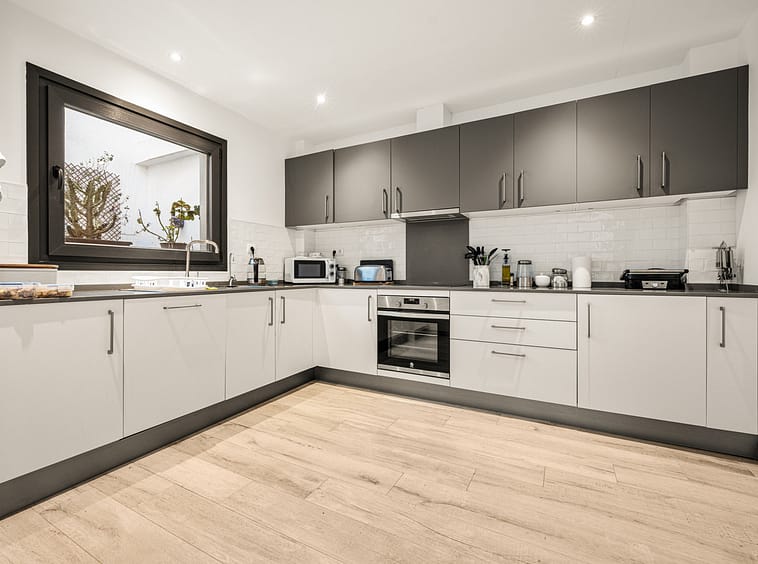 Three large sunny terraces create outdoor living on every level. The internal patio connects the house from top to bottom and brings in natural light. The master bedroom enjoys its own private terrace with open views to the coast and the mountains.