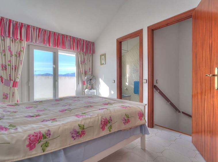 The entrance level welcomes you with a hallway leading into a bright and spacious lounge-dining area complete with a fireplace. From here, sliding doors open onto a generous terrace equipped for outdoor living, ideal for dining, entertaining, or enjoying the sunset. This level also includes a large independent kitchen with a serving hatch to the lounge, a guest toilet, and excellent storage. The first floor hosts two bedrooms with built-in wardrobes and two bathrooms, including a main bedroom with an en-suite, dressing area, and private terrace overlooking the golf course. The top floor is dedicated entirely to the master suite, featuring an en-suite bathroom and a private terrace with elevated panoramic views.
