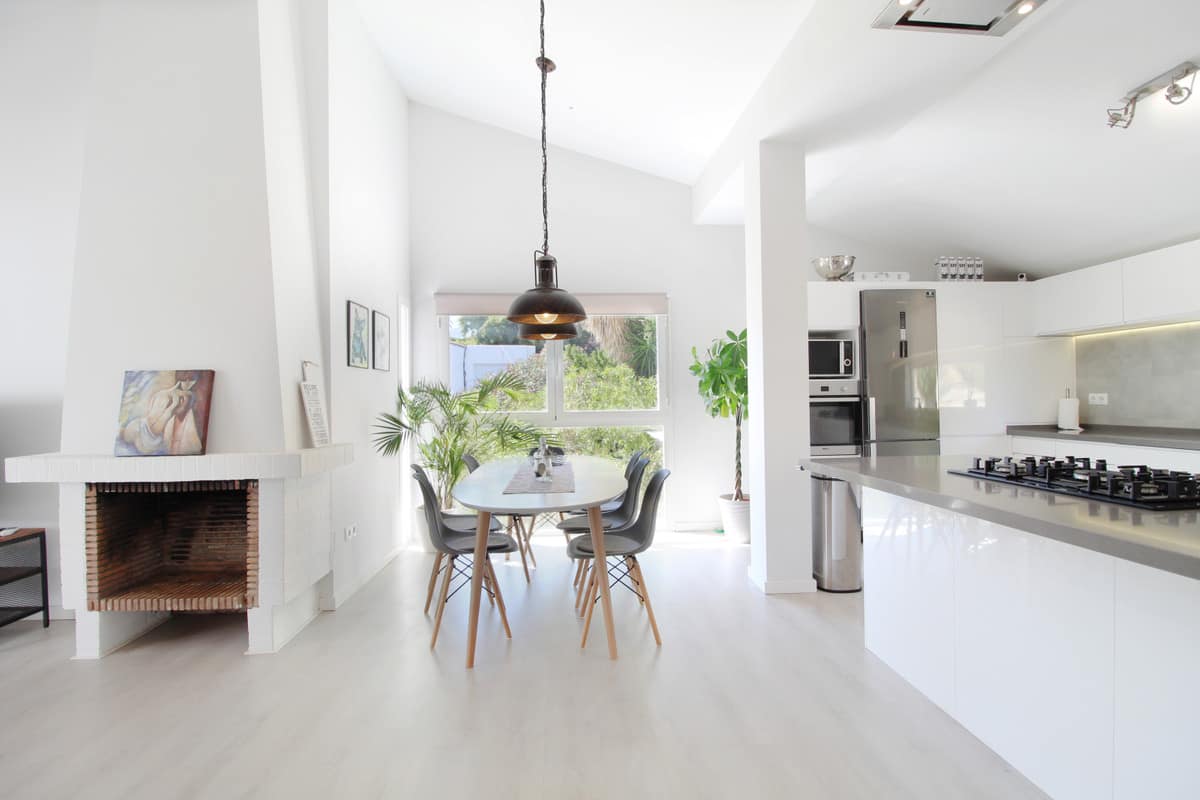 Situated just 5 minutes drive from the beach and Laguna Village shopping centre on the New Golden Mile, lies this recently renovated south west facing corner townhouse. The property is situated on a quiet cul-de-sac and enjoys lovely views out towards the Mediterranean. The house has been renovated in a contemporary style with an open plan kitchen, living and dining area. There are windows on three sides of the property allowing plenty of light to stream in throughout the day. The living room leads out to the terrace from where you can enjoy the sea views, which in turn leads down to the wrap around garden that has plenty of room for a private pool if required. On the lower level there are three double bedrooms including the master suite plus the guest bathroom, all bedrooms lead out to the garden. The property comes with private covered parking and community pool. Estepona centre is 9 mins away and a well known equestrian centre with stables just 2 mins away.