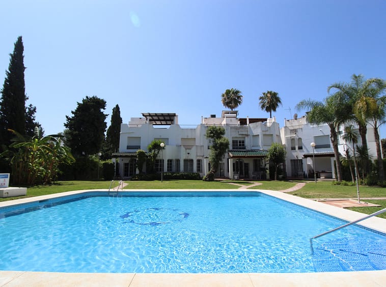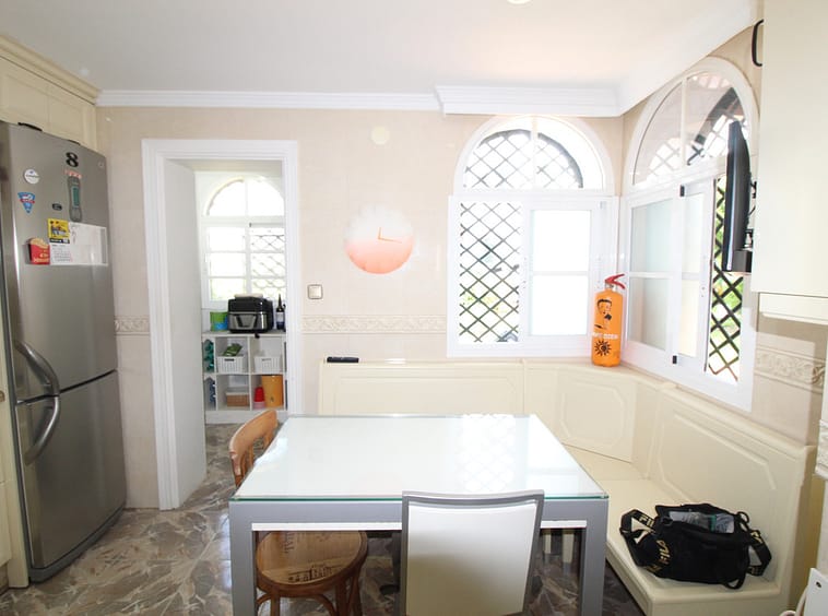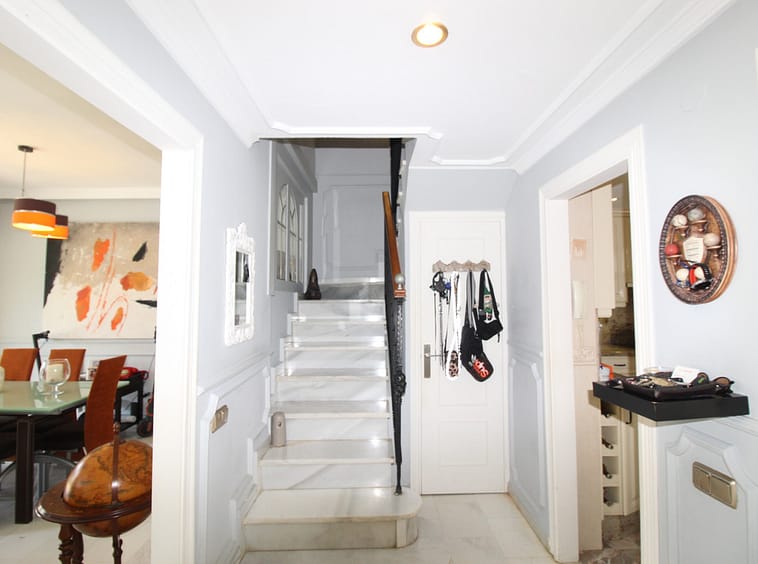 Enjoy the communal garden from the lounge porch! On the first floor are the 3 bedrooms and 2 bathrooms, one of them en suite with shower and large dressing area. New wardrobes in all bedrooms . It is a closed and very well maintained community. The house has several Porches, and huge Solárium with a wooden roof recently put so this new one. Ideal for chill out area and outdoor dinners with barbecue and closed part as well as laundry room. The fantastic panoramic views of the whole wooded area and the mountains of La Quinta. The urbanization is close to everything: Supermarkets, Colleges, Shops, Restaurants etc.. is ideal for Holidays or for families. And perfect to live all year. It has general air conditioning throughout the house and blinds. San Pedro de Alcántara is a 4-minute drive from Puerto Banus. It is for all an ideal house for families and also for investment and enjoy Marnbella with everything next to it;