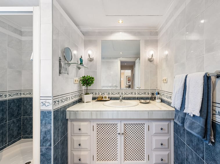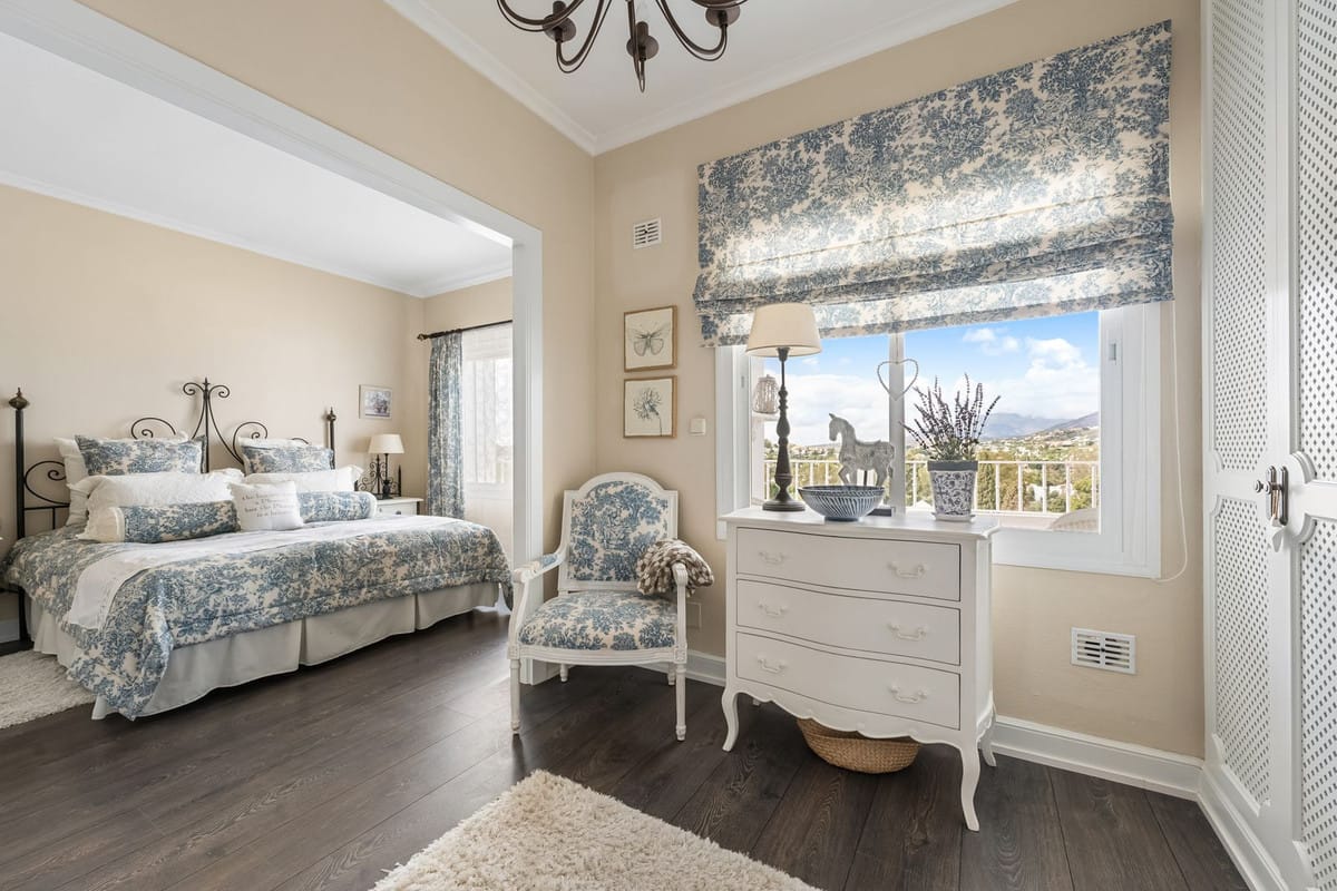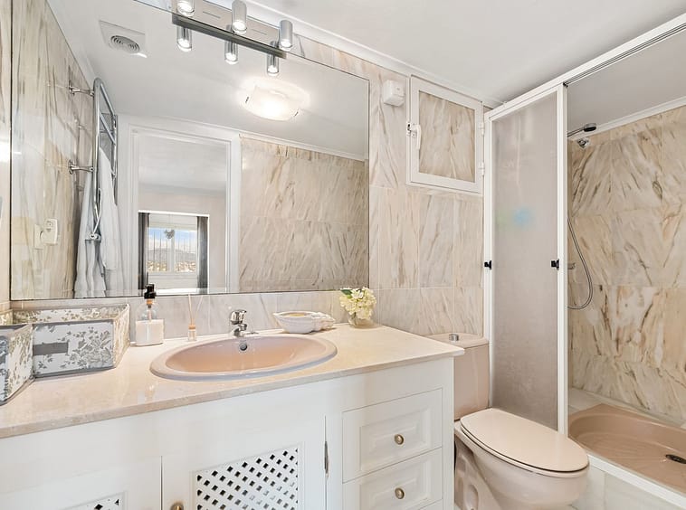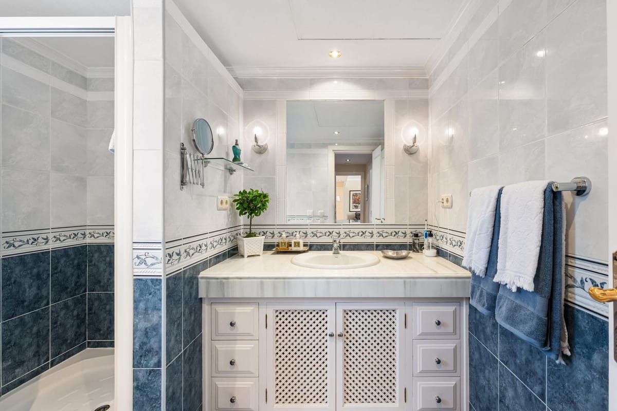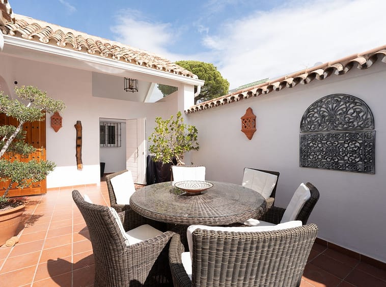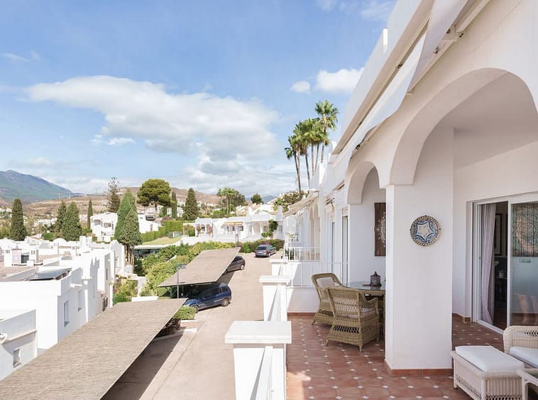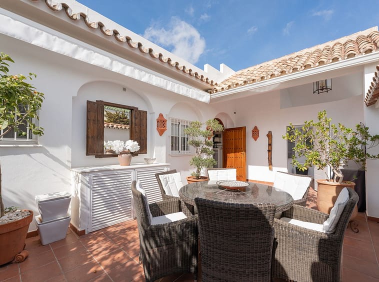 We present this special & classic property in the well known development of Los Jarales. Nestled in the heart of Aloha with views towards the Aloha golf course and across the valley. The spacious entrance takes you to the property through the large patio where you can enjoy the morning sun and its a perfect place for the warm summer evenings. The spacious living room has direct access to the west facing terrace with beautiful open views, here there is also the large kitchen and laundry area , the spacious master suite and a guest toilet. On the lower floor you have 2 large ensuite bedrooms. The property comes with a private look up garage which is easy accesable from the house. The property has been well maintained by the current owners and is ready to move into. Please note that the m2 built are bigger than advertised. A true gem in a popular urbanisation.