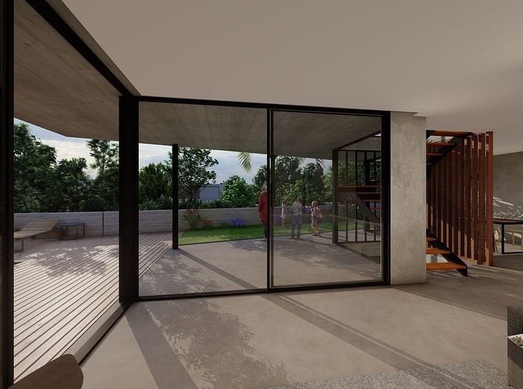 The open living spaces are enhanced by impressive high ceilings, creating a bright and airy atmosphere throughout. Large floor-to-ceiling windows frame the surrounding landscape and bring seamless indoor-outdoor living.
